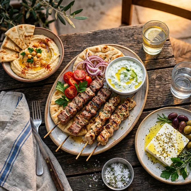 Authentic Mediterranean Souvlaki, Meat Plates, and Dips.